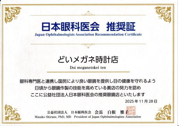 どいメガネ時計店は「日本眼科医会 推奨眼鏡店」です。